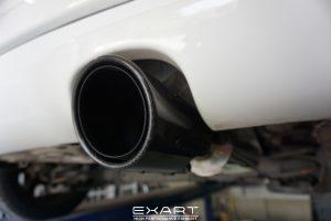 リアマフラーを製作するにあたって、この車両の純正マフラーはセンターパイプから一本物なので、製作が決定した際にオーナー様の目の前でセンターマフラーとリアマフラーをカットしリアマフラーが無い状態で音を聞いて頂きサイレンサーの仕様等を打ち合わせします。