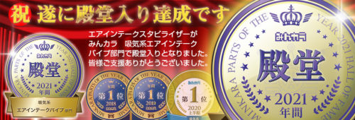 当社のエアインテークが「殿堂入り」になりました~♪ありがとうございます!