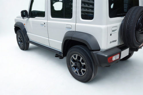 ジムニーノマド専用に設計された「EXART ONEマフラー」。 左右サイド出しレイアウトが特徴で、個性的かつスポーティーなリアビューを実現します。