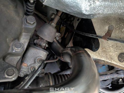純正パイプは、曲げの制約などからフロアに対して少し隙間が空いた(垂れ下がった)状態でレイアウトされていました。