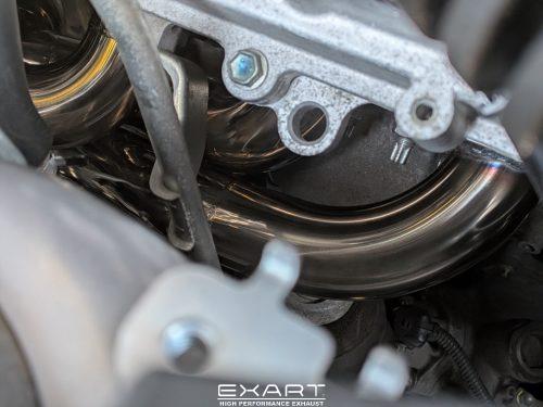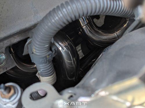 純正のエキマニは生産効率重視の形状ですが、EXART製は排気効率を追求したパイプ取り回しで設計しています。