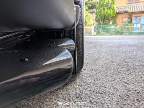 サイドステップの最も外側のラインから糸を垂らして確認を行い、確実に規定内に収まるようレイアウトされています。